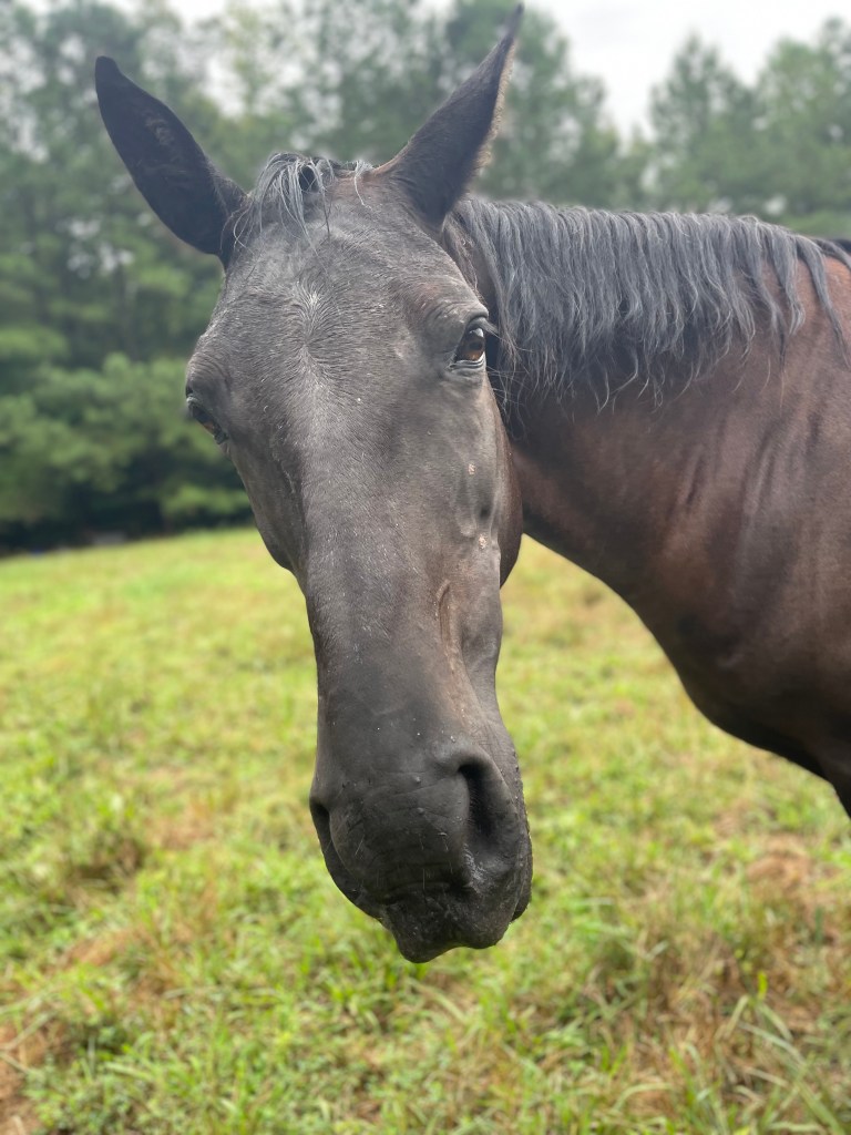 Beauty is our 21 y/o Tennessee Walking Horse mare. She loves eating food, going on trail rides, and rolling in mud right after a bath. She is in partial retirement, giving riding lessons a couple times a week and starting liberty work. She enjoys her top-tier herd status, being the boss over all the goats and sheep.