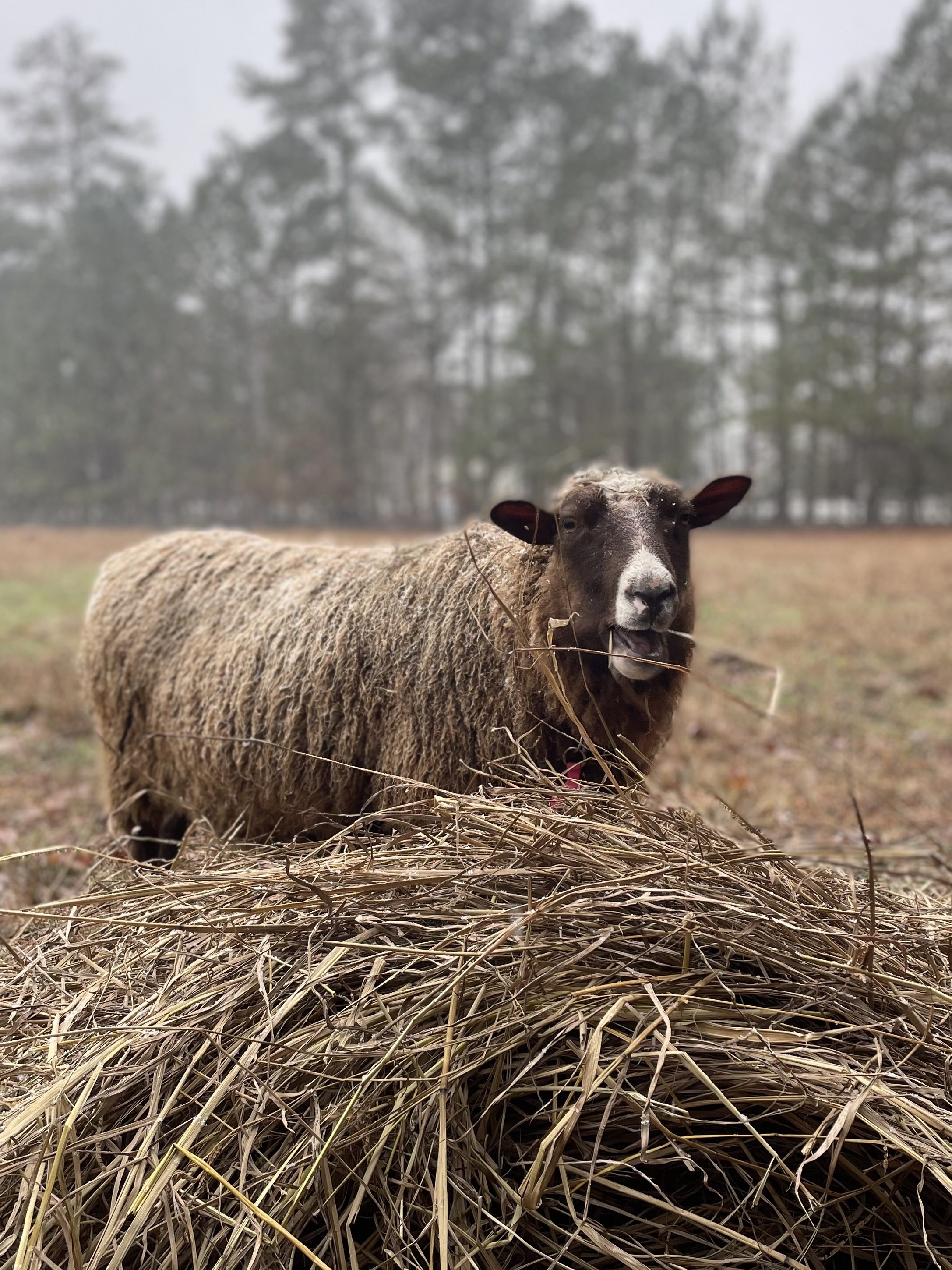 Peanut is our dear little Finnsheep ewe. She is 5 years old, and is the life of the herd. She was a bottle baby, and had a very rough start to life. She has since come a long way, and is always the first one to greet anyone that comes to see the herd! She loves following us around the pasture when doing fence checks, cheek scratches, and car rides.